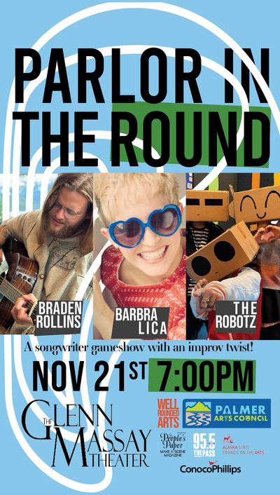 Now in its 11th season, Alaska’s own songwriter game show with an improv twist returns to Palmer with an all-star lineup guaranteed to deliver dazzling musicianship, lightning wit, and that unmistakable feeling that we’re all in this together. The artists will take turns playing songs, sharing behind-the-scenes stories, and riffing with each other through six themed rounds of increasing musical challenge with an opportunity for audience participation to make it even more challenging.
